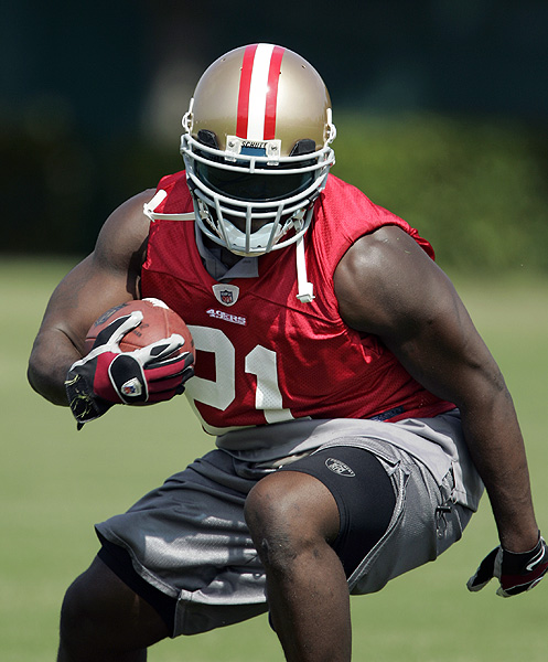 San Francisco 49ers running back Frank Gore (21) runs during NFL football practice at 49ers headquarters in Santa Clara, Calif., Tuesday, May 19, 2009. (AP Photo/Paul Sakuma)
