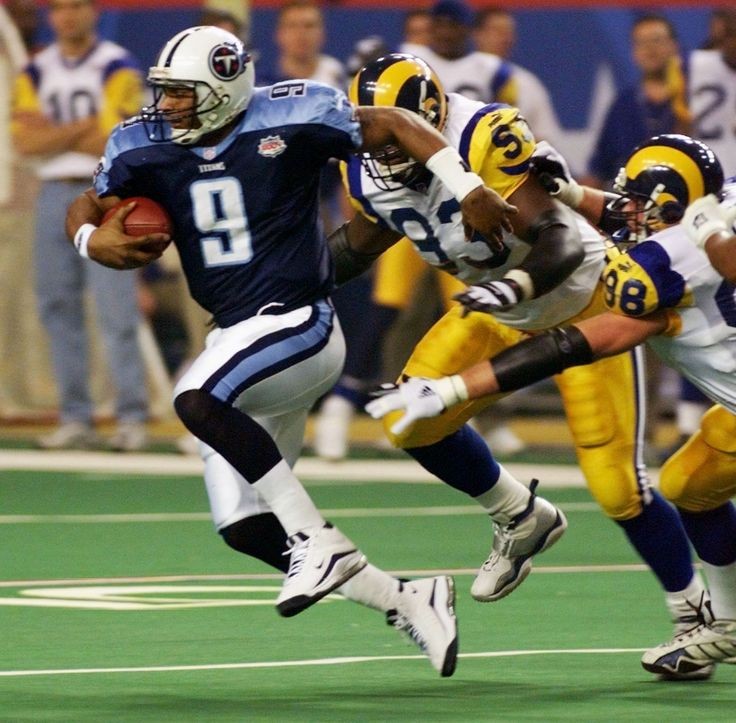 The Titans were powered on offense by Eddie George from Ohio St. who bludgeoned defenders with his running style for over 1,300 yards. Hall of Famer Bruce Matthews & John Runyan were leaders on a very physical line. The late Steve McNair was a developing quarterback who had his struggles in 1999 but was a legitimate running threat himself. In that 41-14 thrashing he threw for 5 of his 12 TDs for the season. He had a short to intermediate passing game that complimented their running game.