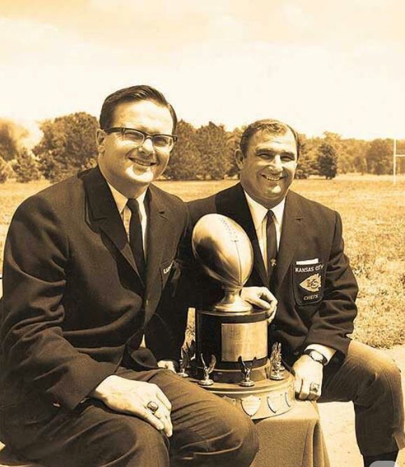 AFL Founder / Chiefs Owner Lamar Hunt with Hank Stram and the the 1966 AFL Trophy.
