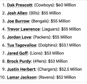 Sorry for the interruption, but really quick I wanted to touch on this as I’ve written countless times – football is about the team and there are many ways to build a championship unit. It takes balance and good quarterbacking but more importantly defense. The propaganda of covering just the quarterback has been constantly overblown and its simply not true. Well Super Bowl LX is being played in 4 days and none of these top 10 paid QBs are in it.