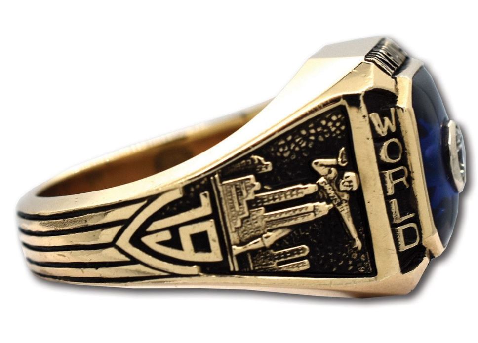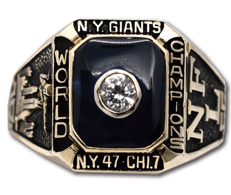 You are looking at the first championship ring won in the NFL by both Tom Landry and Vince Lombardi. Each would go on to become legendary head coaches but they were offensive and defensive coordinators for the New York Giants at the time. The 1956 NFL Championship Game between the New York Giants and Chicago Bears was won by New York 47-7. In the fabled house of the New York Yankees, these two teams fought it out in the first ever nationally televised NFL championship game. Its notoriety reduced because of the blowout and the famous game held in the same stadium 2 years later between the Colts and Giants…uh…you may have heard of it.