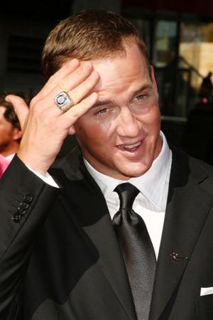 Peyton Manning wearing his Super Bowl XLI championship ring.
