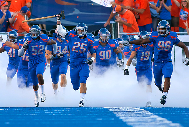 After watching TCU and Boise St beat their heads against a brick wall just to play in BCS Bowl games, it finally hit our chancellor what needs to be done. The Mountain West Conference will never garner Boise St the respect it needs to crash the BCS Title Game no matter how well they play. The 4 undefeated seasons through the 2000s aren’t enough and neither were the 2 BCS Bowl wins in the eyes of jaded BCS conference lovers. With everyone joining these collegiate super conferences it’s time to reverse gears and go independent. Especially Boise St, at least TCU gets love since they hail from Texas.