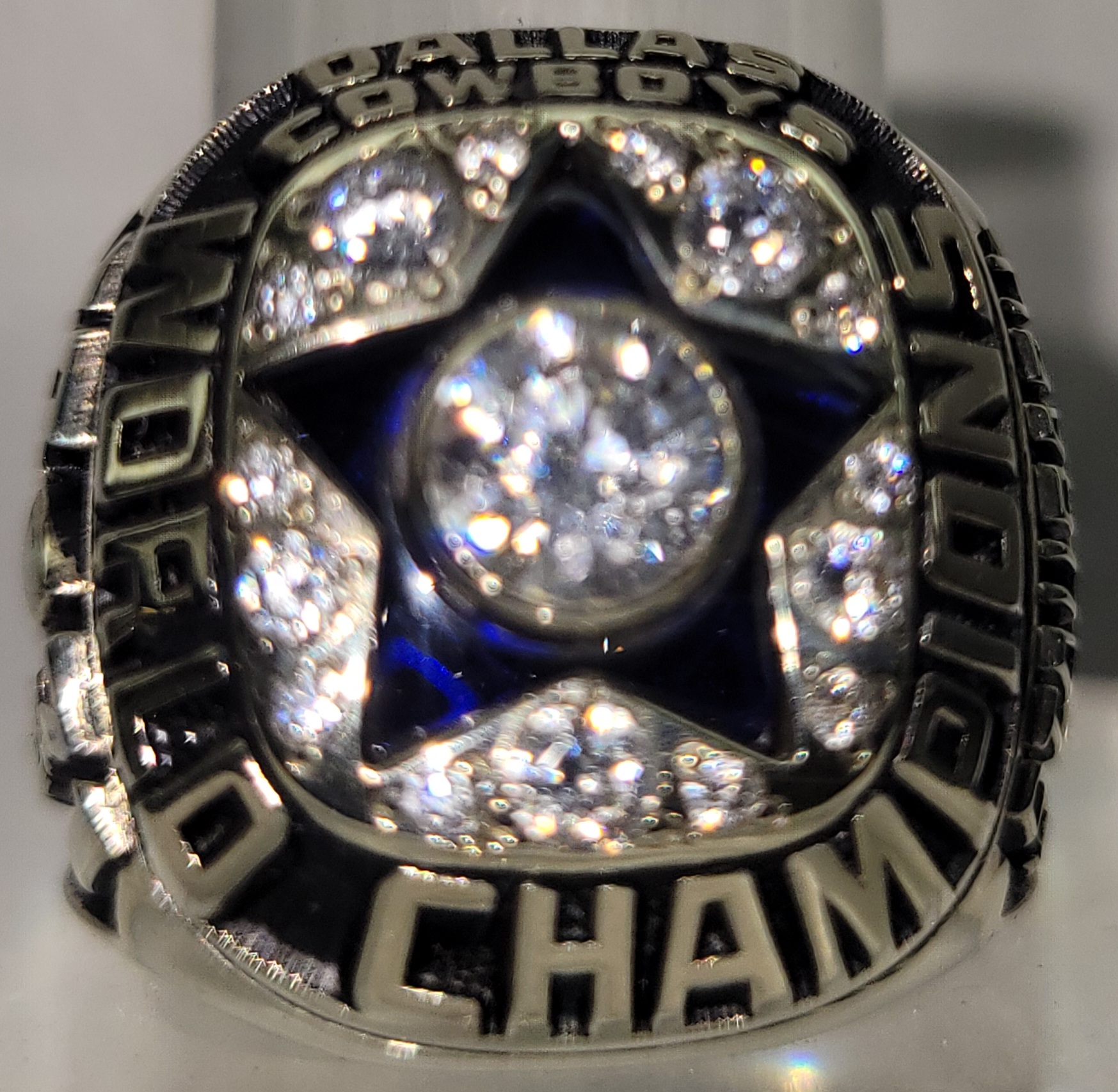 By the way…”America’s Team” used to be called “Next Year’s Champions” ’til they won this ring in Super Bowl VI, 24-3 over the Miami Dolphins in New Orleans.
