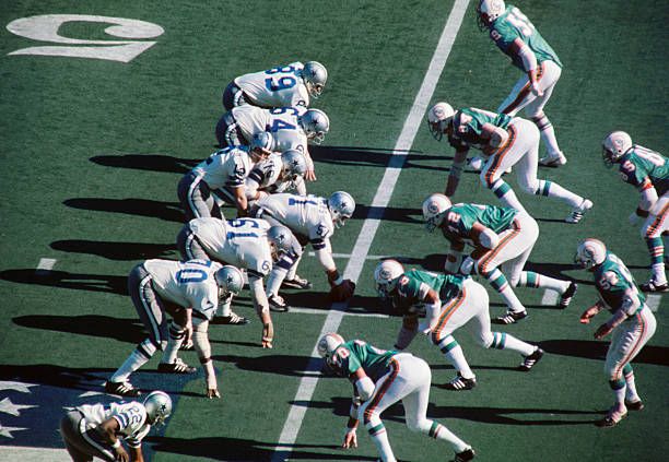 NEW ORLEANS – JANUARY 16: Dallas Cowboys’ quarterback Roger Staubach #12 prepares to snap at the scrimmage line during Super Bowl XI against the Miami Dolphins at Tulane Stadium on January 16, 1972 in New Orleans, Lousiana. The Cowboys defeated the Dolphins 24-3. (Photo by Focus on Sport via Getty Images)
