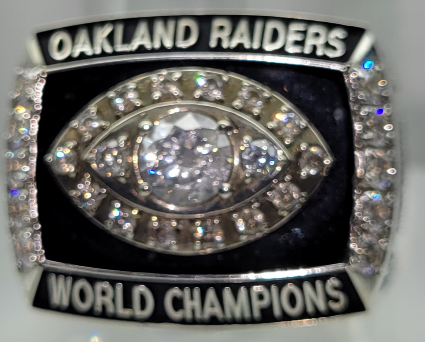 Al Davis said he wanted a ring so nice that he wanted a Raider to be able to meet the Queen of England and not feel he had to take it off. Mission accomplished!! One of the unique features to every Raider championship ring is that Al Davis uses the AFL logo “A” and not the AFC “Block A” on the side. This was the bauble for winning Super Bowl XI on January 9, 1977 over the Minnesota Vikings 32-14.