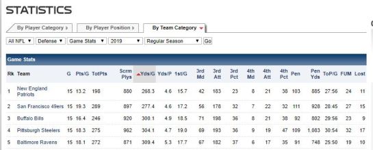 The ability to come up with timely stops is where defenses win championships. Once you couple this with #2, a strong running attack, then you have a team that can power the football down their oponents throat and control the clock. You’ll also notice of the top 5 rushing teams 4 are in the playoffs. The only offset to this is the bubble screen teams are using as a replacement for high percentage running plays.