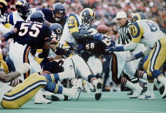 Against the Rams in the NFC Championship Game, Singletary’s hit on 4th and 1 and two forced fumbles by Eric Dickerson, one by Marshall below, and the complexion of that game changed. I can remember when Marshall crushed Henry Ellard on a shallow cross knocking his own chinstrap sideways.Then to ice the game Marshall recovered a fumble forced by Richard Dent and returned it 52 yards for the TD that punctuated their 24-0 victory.