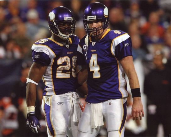 This went on for years as the Vikings, with Randy Moss, could make the playoffs yet could only muster 1 more championship appearance. Once there, the lights went out in a 41-0 loss to the Giants in the 2000 NFC Championship. The most explosive player in football and they couldn’t field a champion with him. After his departure lightning struck again when they landed future Hall of Famer in RB Adrian Peterson in the 2007 draft. His rookie year saw him rush for 1,341 yards highlighted by an NFL record 296 yd rushing performance against San Diego. Yikes! His combination of speed and power might have been the most frightening at its zenith in NFL history. If they only could get a quarterback with him they could be lethal…
