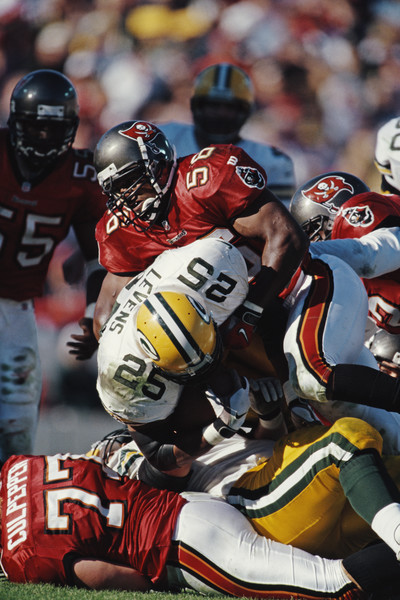 Nickerson became the centerpiece of Defensive Coordinator Floyd Peters’ 4-3 at Middle Linebacker and a terror was set loose. He became a sideline to sideline tracker and hit everything in sight. In ’93 he led the NFL in tackles with a team record 214 while making his 1st Pro Bowl and voted 1st team All Pro. It was only the 4th time a Tampa Bay defender was voted to the Pro Bowl in Hawai’i and the 2nd all pro selection since the team’s inception in 1976.