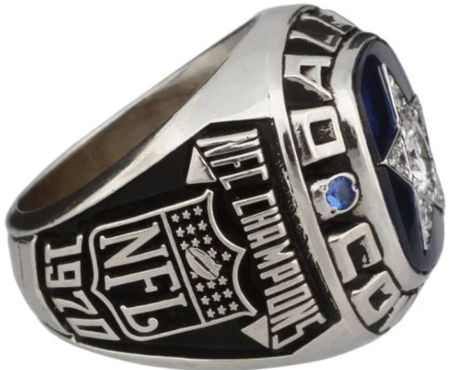 By the way…”America’s Team” used to be called “Next Year’s Champions” ’til they won this ring in Super Bowl VI, 24-3 over the Miami Dolphins in New Orleans.