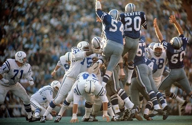 The defense, which had a series of let downs in previous championship games played brilliantly. Doomsday knocked Johnny Unitas out of the game, in fact the Colts first touchdown was a fluke double tipped pass. They even blocked the extra point and kept the Colt point total to 6 until deep in the 4th quarter. Chuck Howley (Super Bowl V MVP & only time losing player received the award) and the Cowboys defense forced 7 turnovers yet the offense could only eek out 13 points to lose on a last second field goal 16-13.